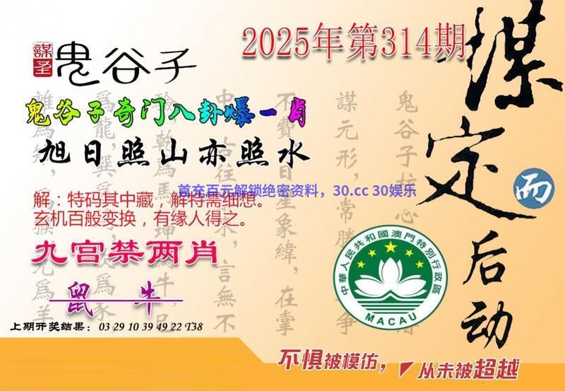 | 314期鬼谷子《旭日照山亦照水》 解释:绘了一幅美丽的自然景象,展现了太阳升起时,山川河流都被温暖的光线所覆盖的美景 综合:虎龙羊兔猴鸡狗鼠 主特:16.28.14.26.23.35.15.27.22.21 |